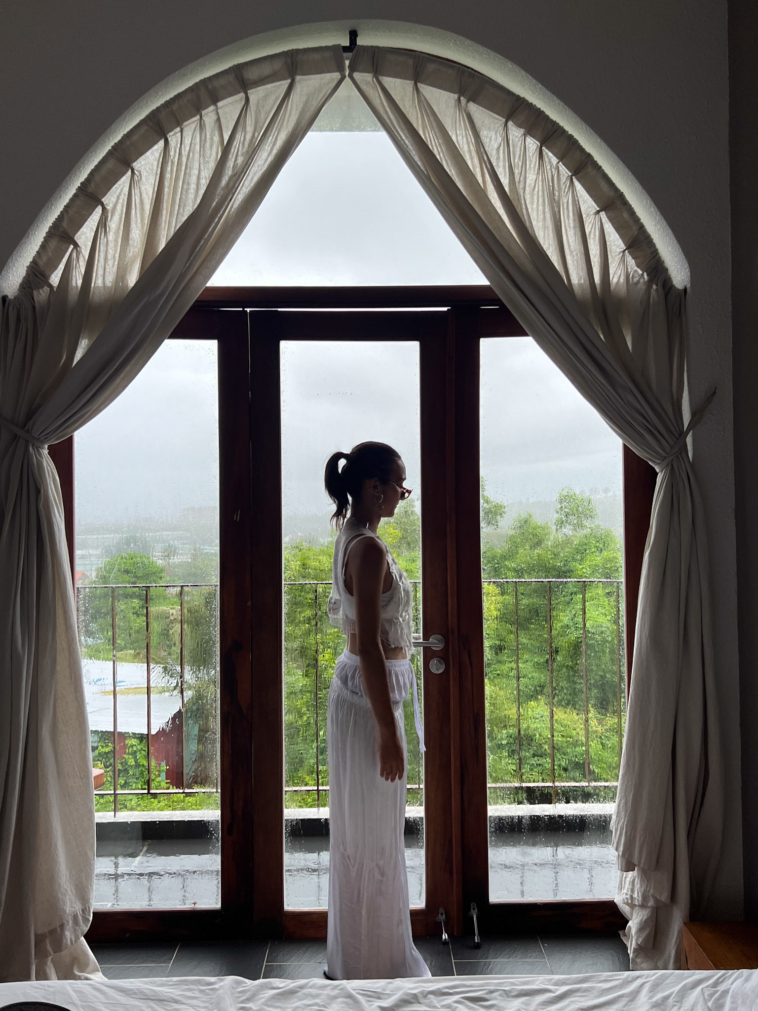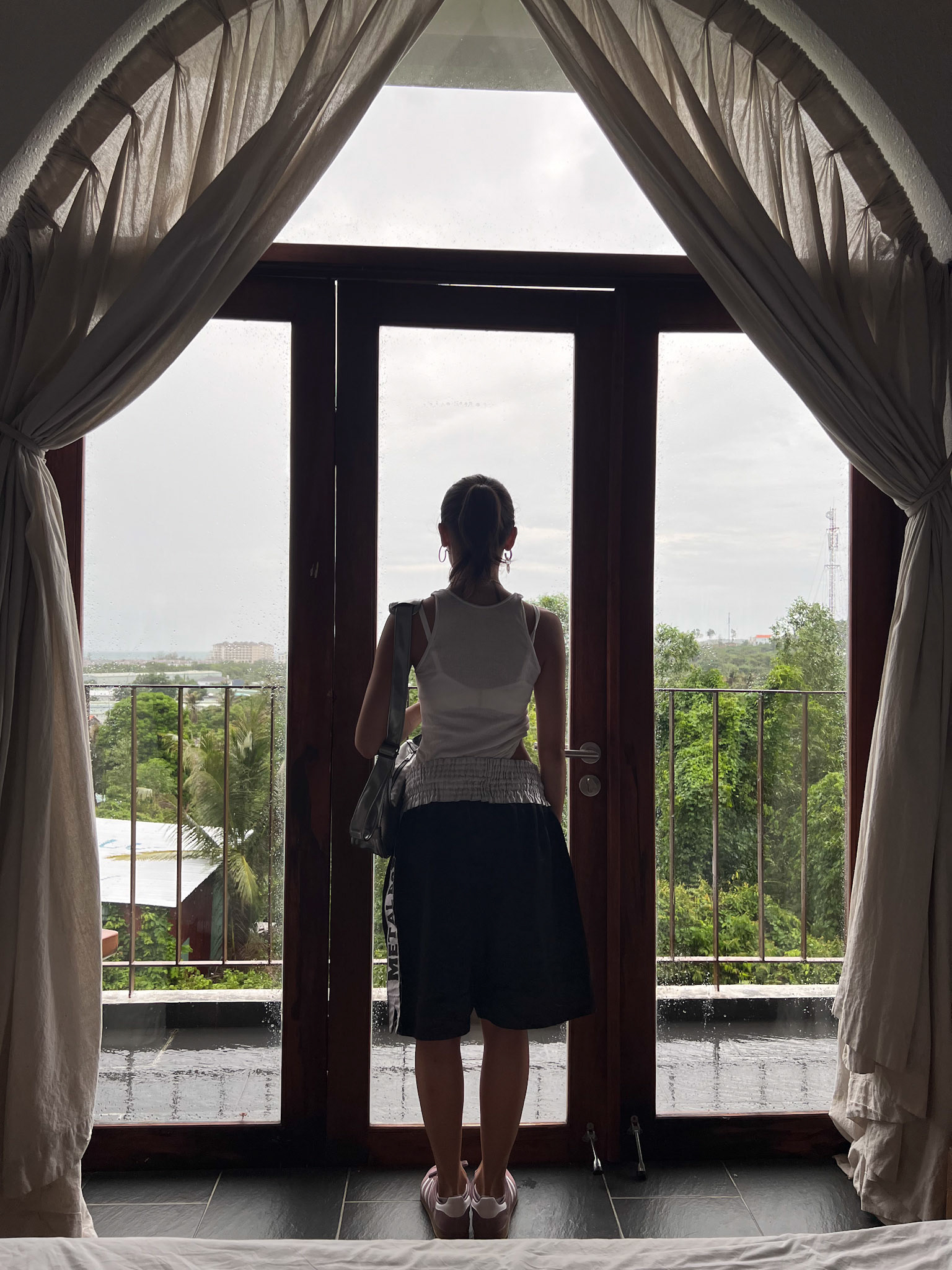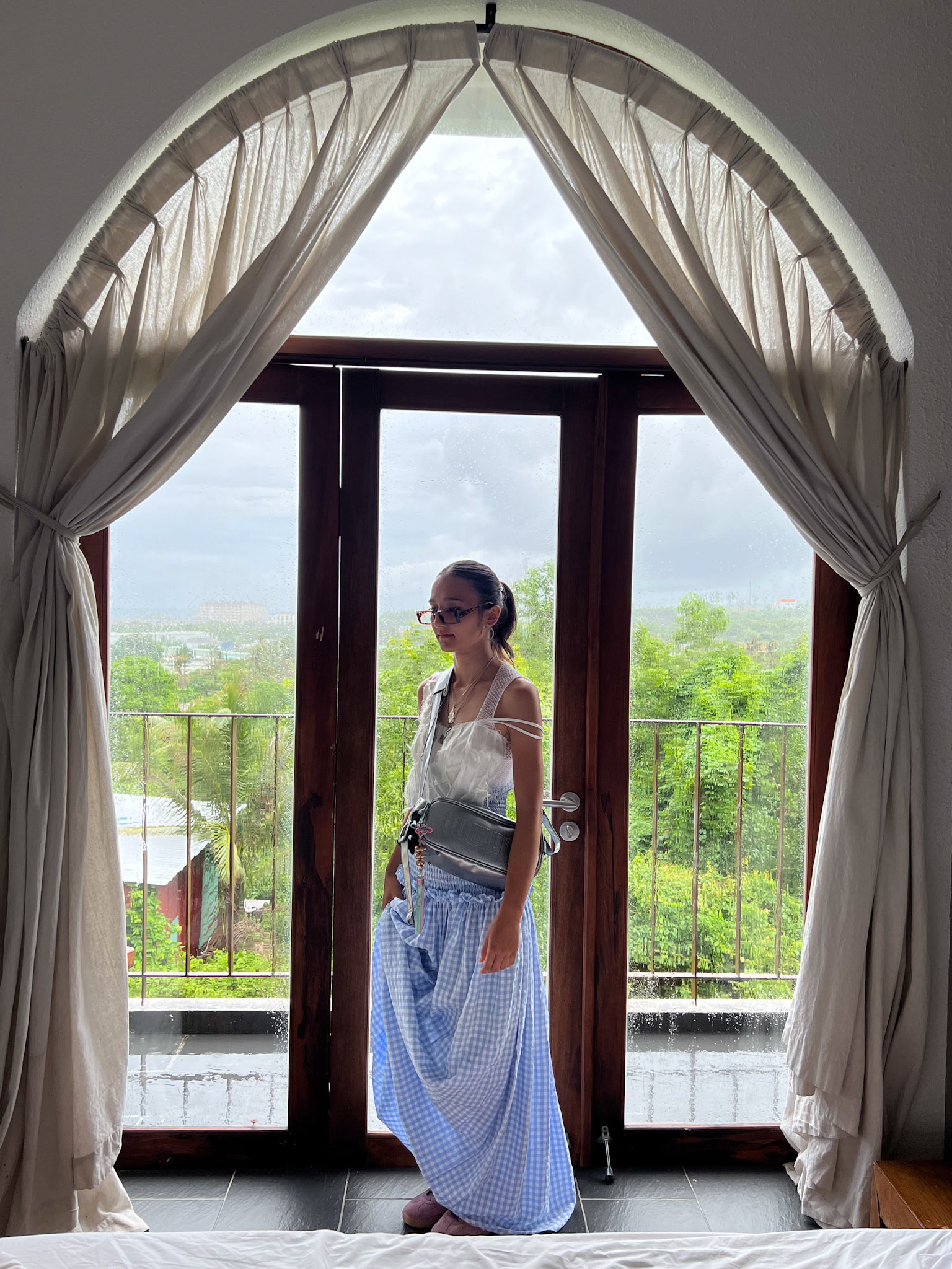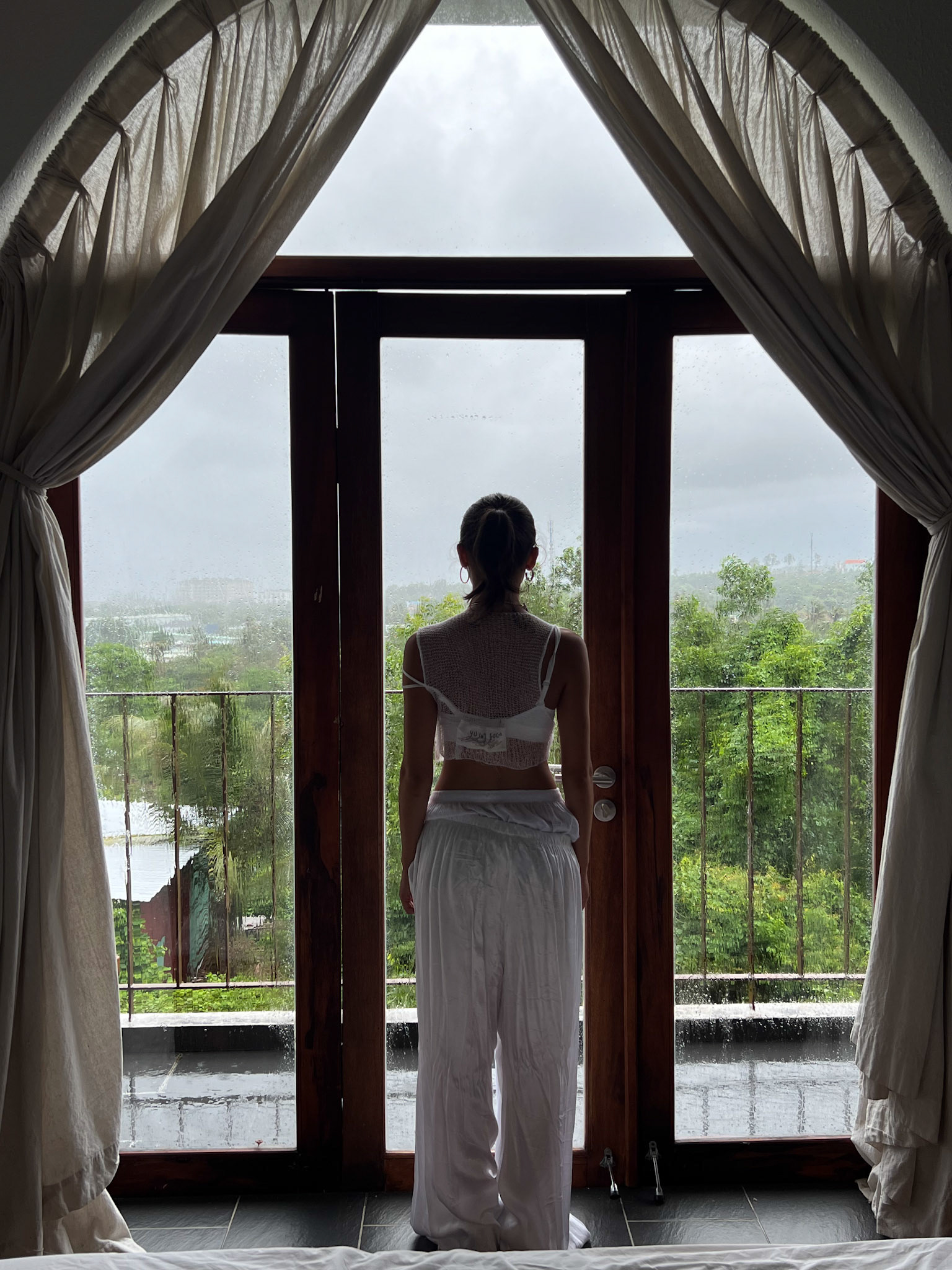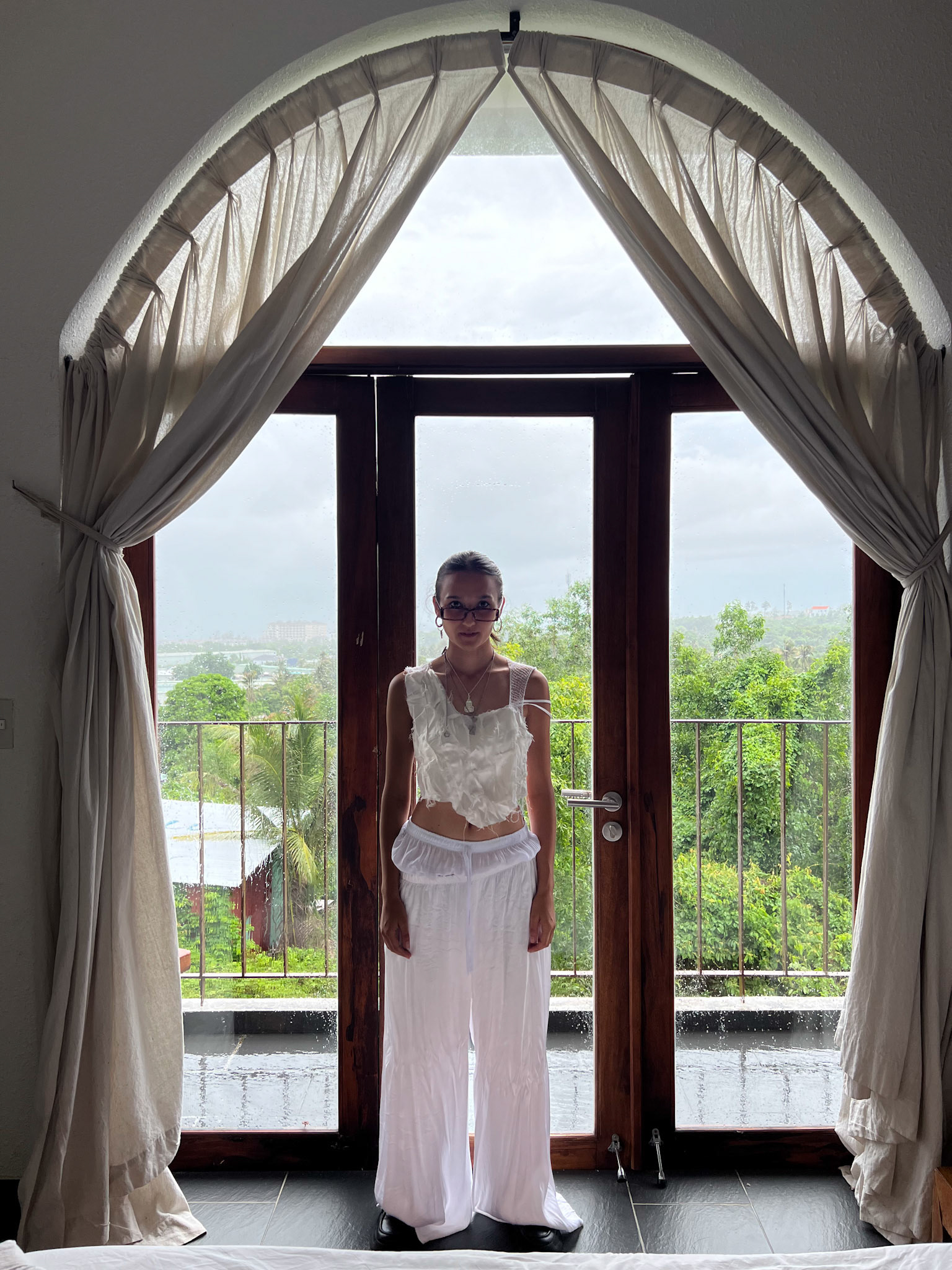 request for upcoming music video: Sporty chic, fluent, wide range of motion, experimental, color palette: Red - burgundy - blue - white, mood: Summer vacation.