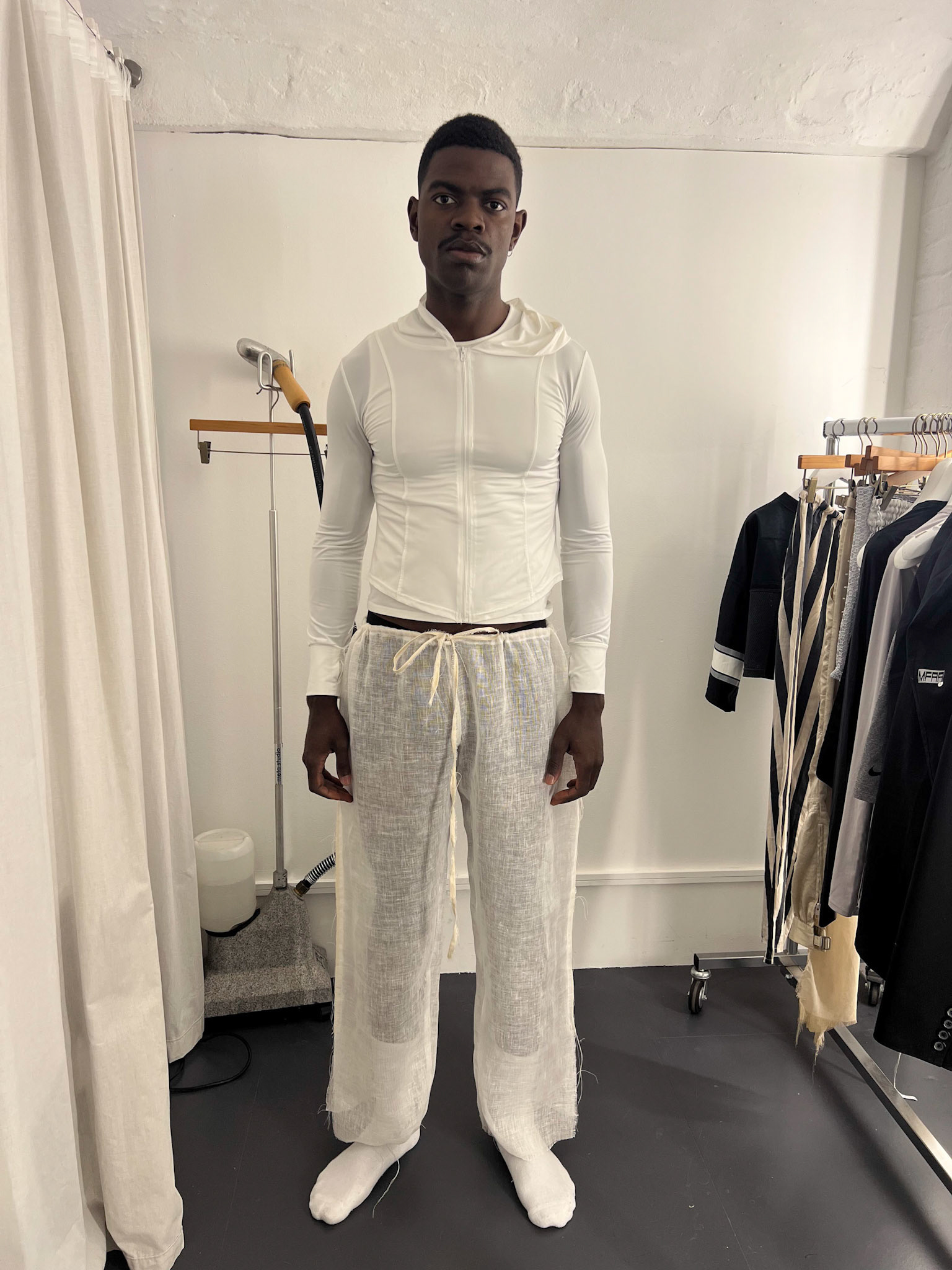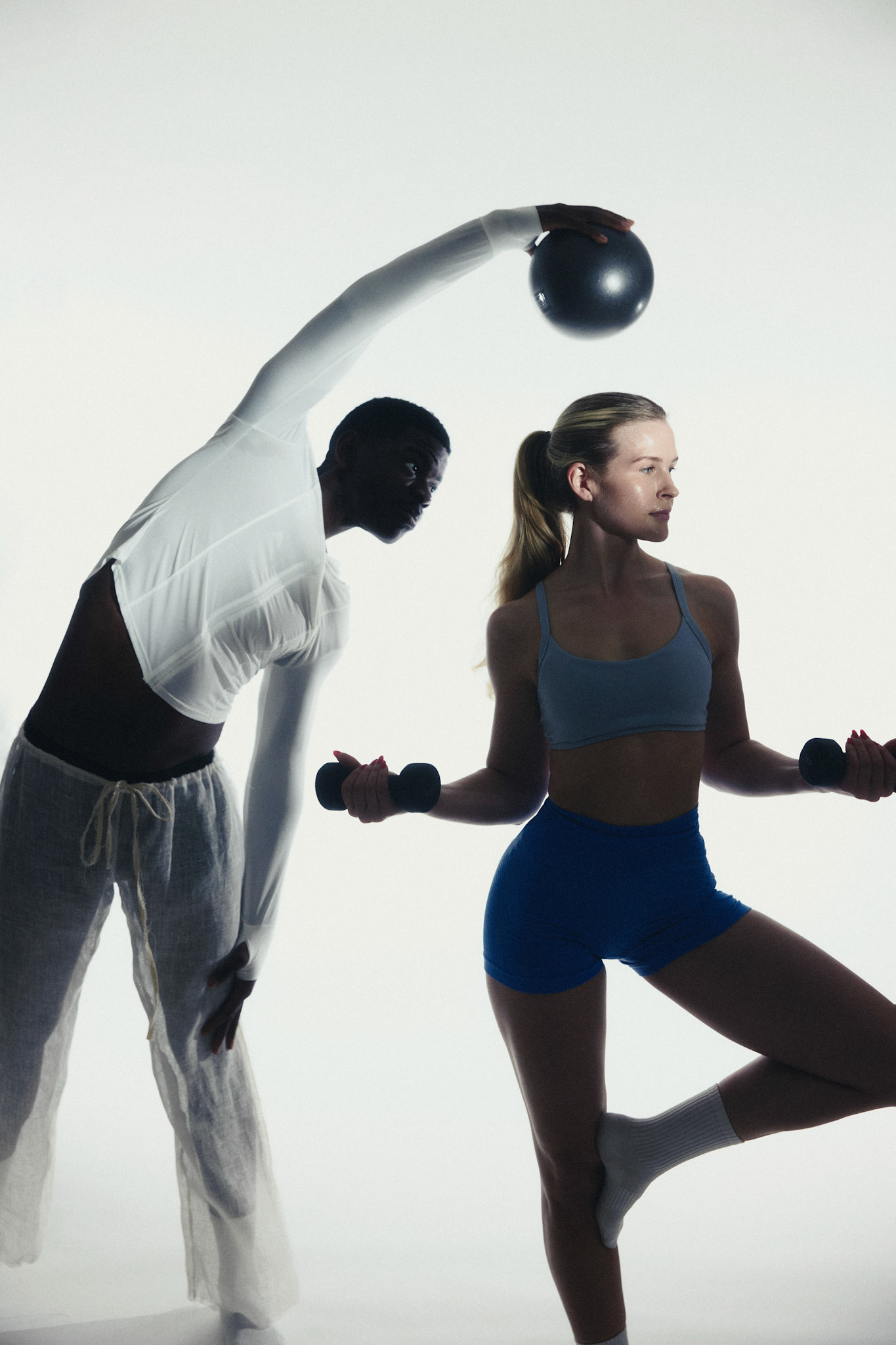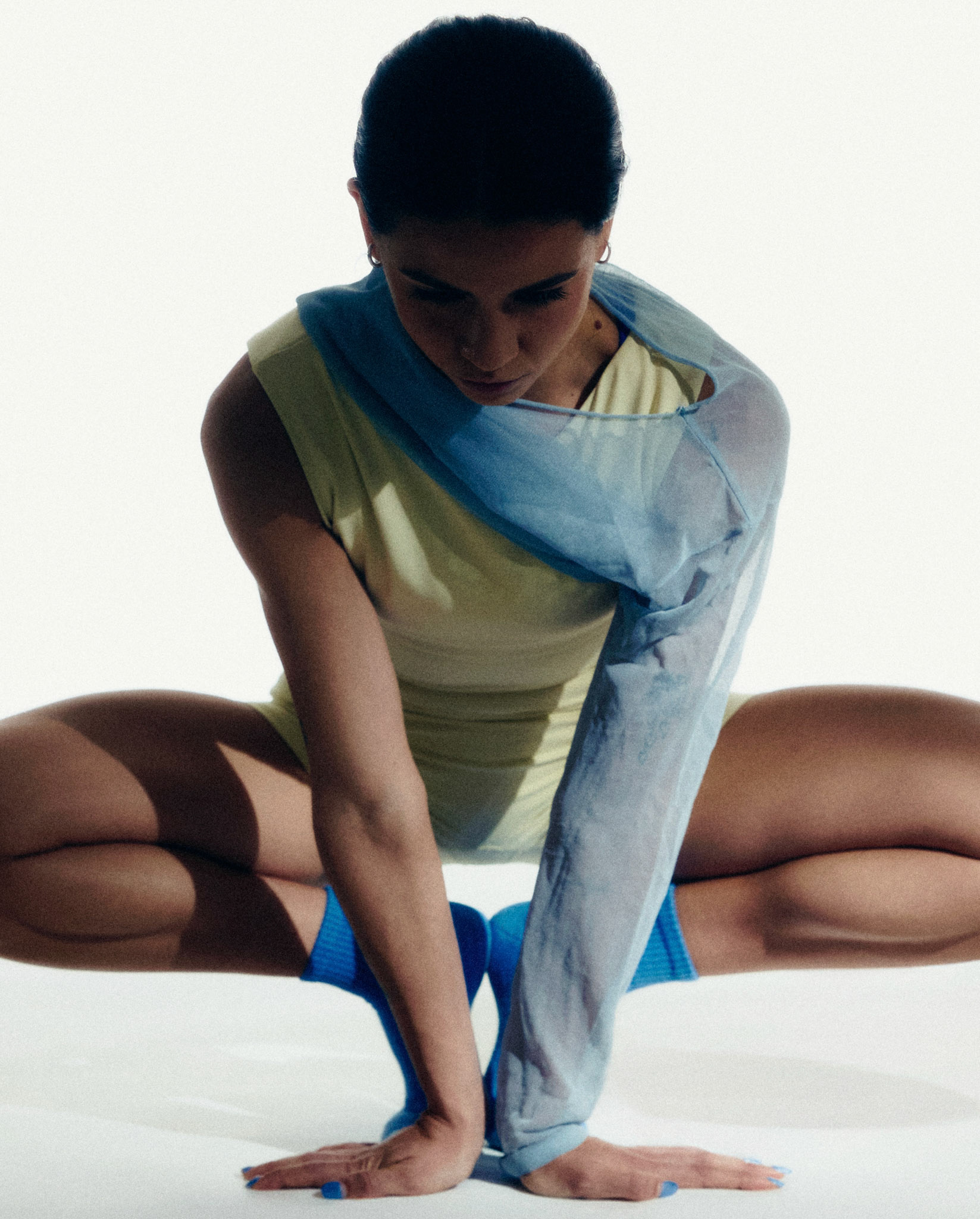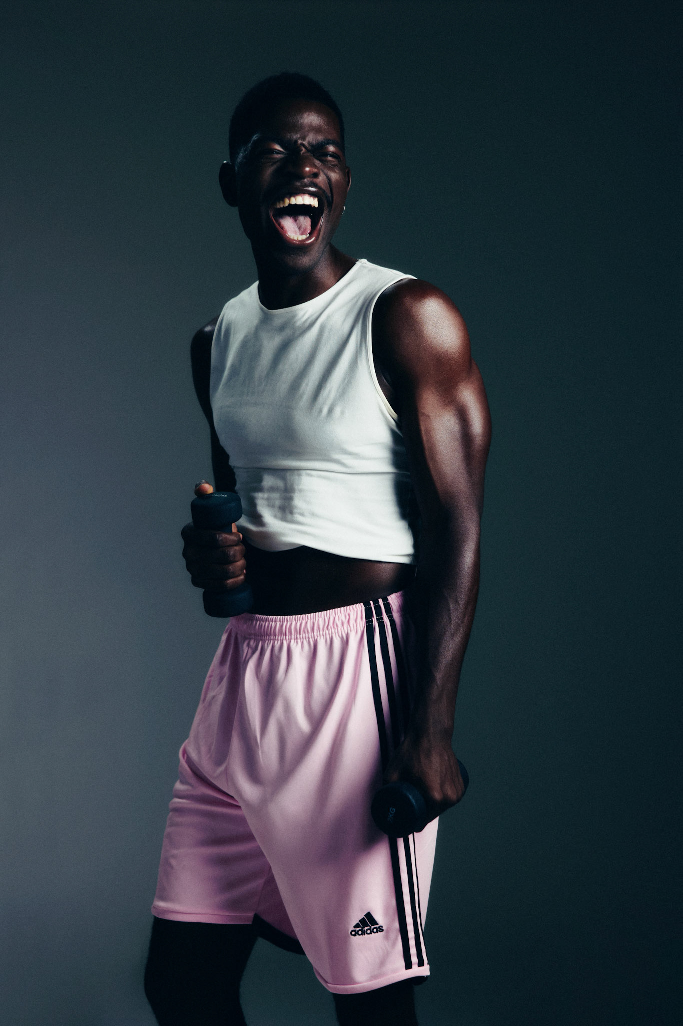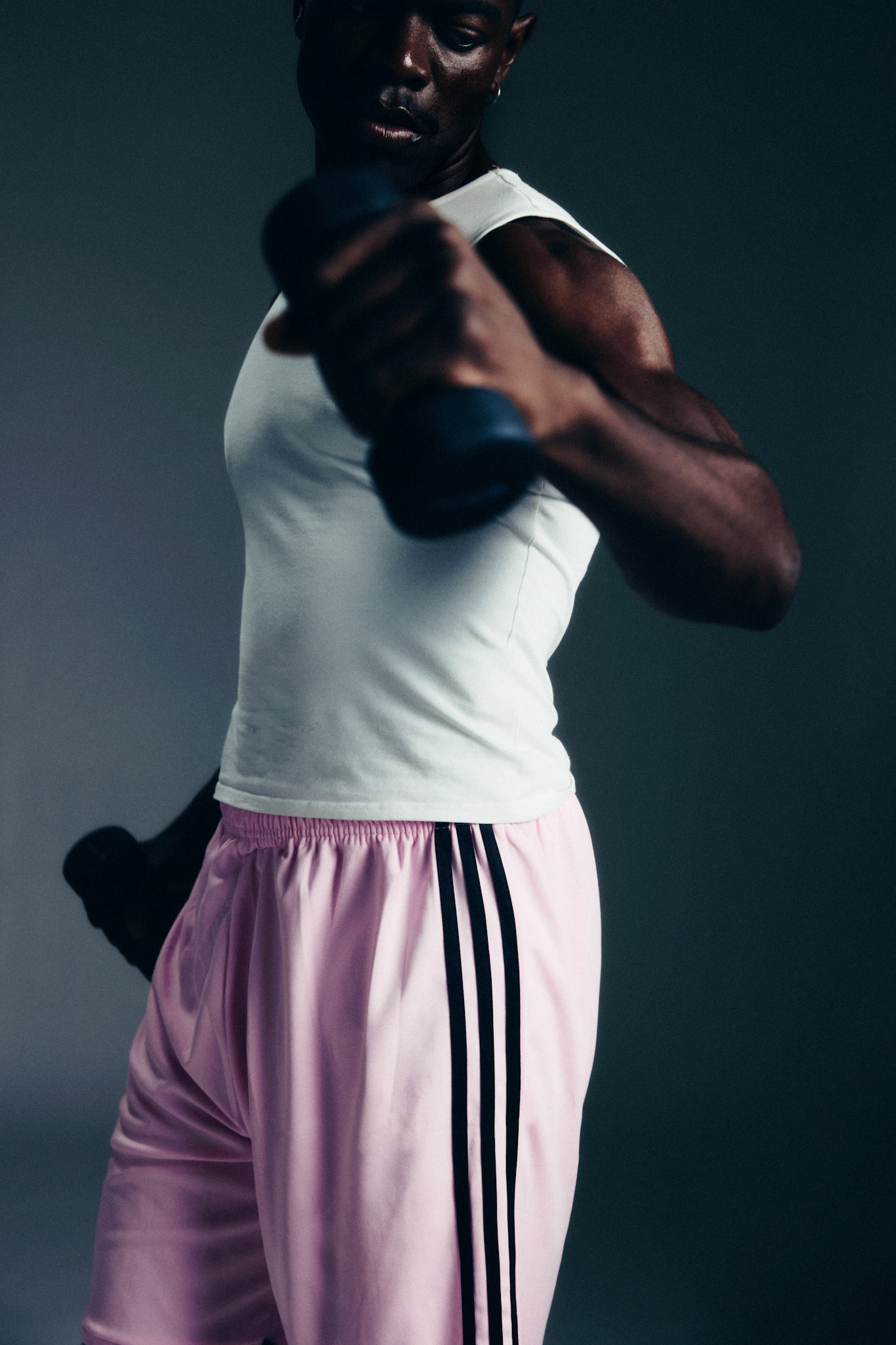 request for campaign: ready to wear, leisurewear meets sportswear, casual, colourful, soft masculinity, fun, team spirit, color palette: pastel - blue - yellow - pink - white , mood: After work pilates.